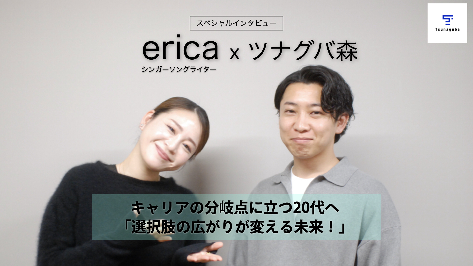 今回はアーティストとして長年活動を続けるericaさんと、株式会社ツナグバのキャリアアドバイザーの森勇樹さんに、それぞれのフィールドでの「最初の一歩」や「背中を押す力」について語っていただきました。